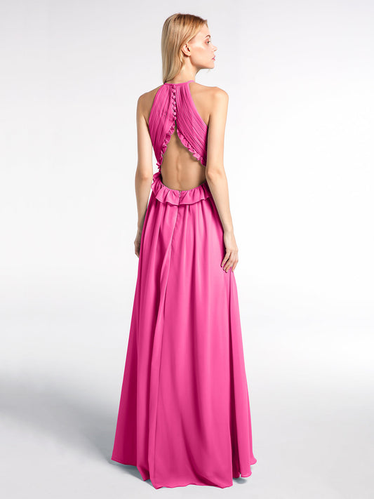 Babaroni BlancheVestido largo de chiffon con escote en forma de cerradura y espalda descubierta Azalea