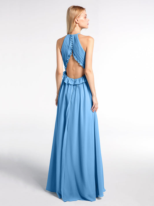 Babaroni BlancheVestido largo de chiffon con escote en forma de cerradura y espalda descubierta Azul Cielo
