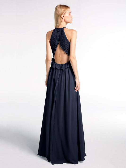 Babaroni BlancheVestido largo de chiffon con escote en forma de cerradura y espalda descubierta Azul Marino