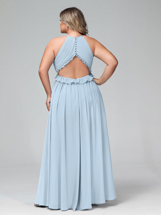 Babaroni BlancheVestido largo de chiffon con escote en forma de cerradura y espalda descubierta Azul Cielo Tallas Grandes