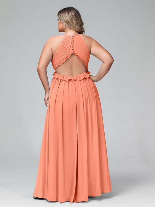 Babaroni BlancheVestido largo de chiffon con escote en forma de cerradura y espalda descubierta Atardecer Tallas Grandes