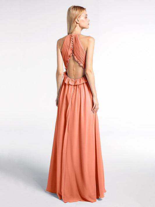 Babaroni BlancheVestido largo de chiffon con escote en forma de cerradura y espalda descubierta Atardecer