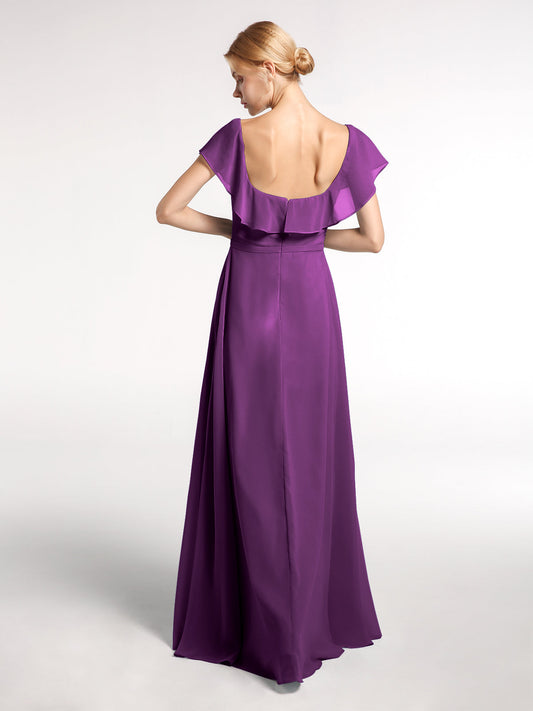 Babaroni DinahVestido largo de chiffon con escote cuadrado y abertura frontal Uva