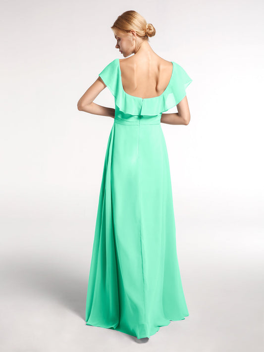 Babaroni DinahVestido largo de chiffon con escote cuadrado y abertura frontal Verde Menta