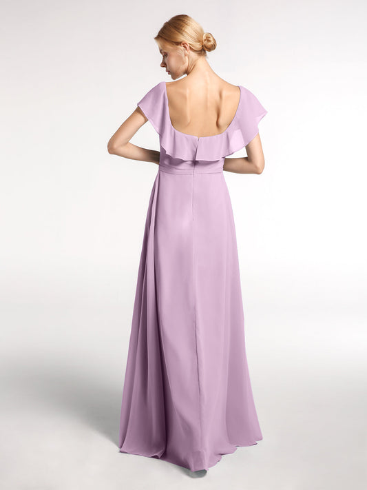 Babaroni DinahVestido largo de chiffon con escote cuadrado y abertura frontal Wisteria