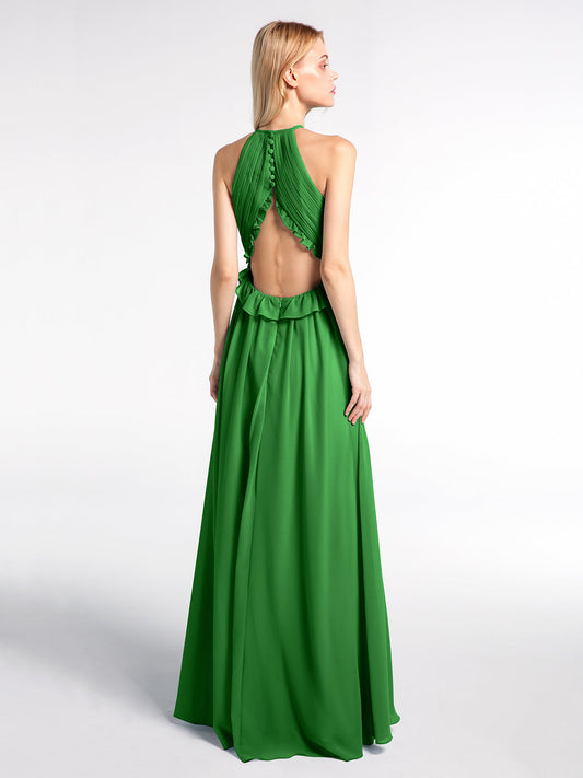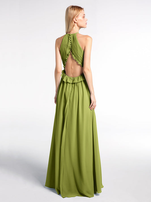 Babaroni BlancheVestido largo de chiffon con escote en forma de cerradura y espalda descubierta Verde Lima