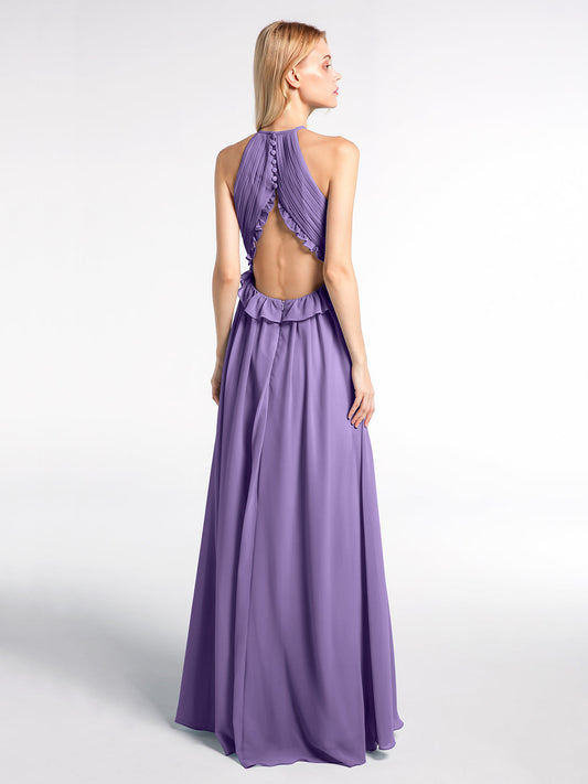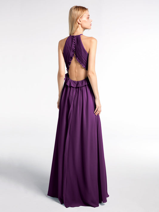 Babaroni BlancheVestido largo de chiffon con escote en forma de cerradura y espalda descubierta Uva