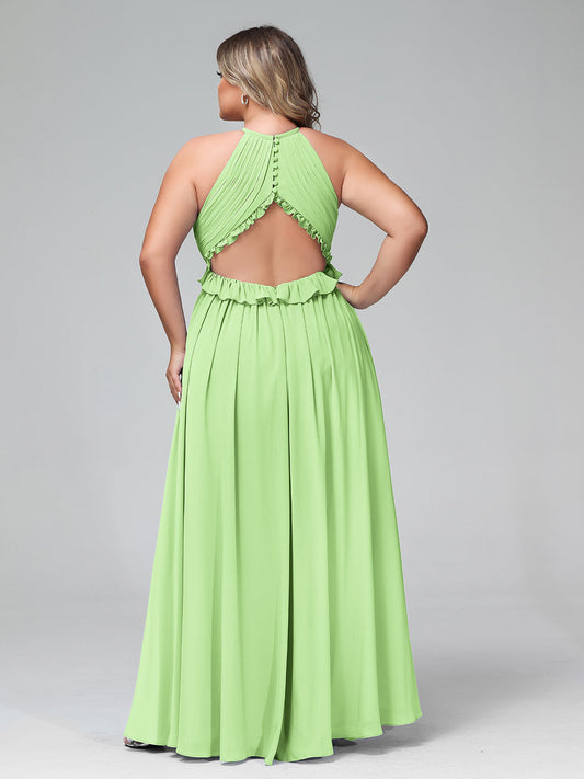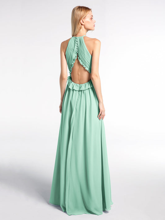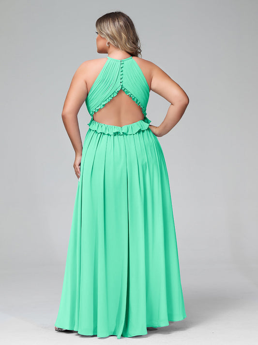 Babaroni BlancheVestido largo de chiffon con escote en forma de cerradura y espalda descubierta Verde Menta Tallas Grandes