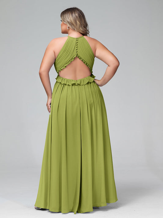 Babaroni BlancheVestido largo de chiffon con escote en forma de cerradura y espalda descubierta Verde Lima Tallas Grandes