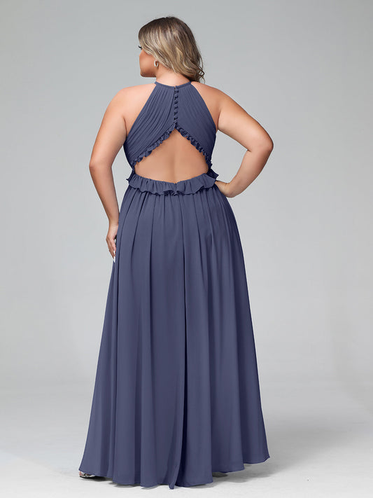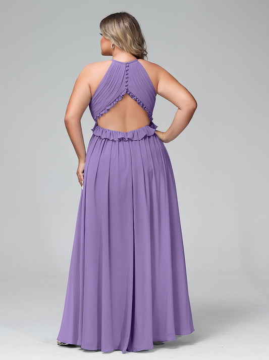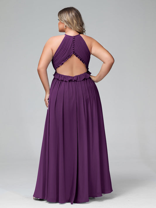Babaroni BlancheVestido largo de chiffon con escote en forma de cerradura y espalda descubierta Uva Tallas Grandes