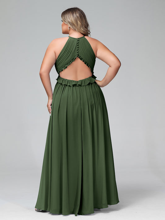 Babaroni BlancheVestido largo de chiffon con escote en forma de cerradura y espalda descubierta Verde Oliva Tallas Grandes