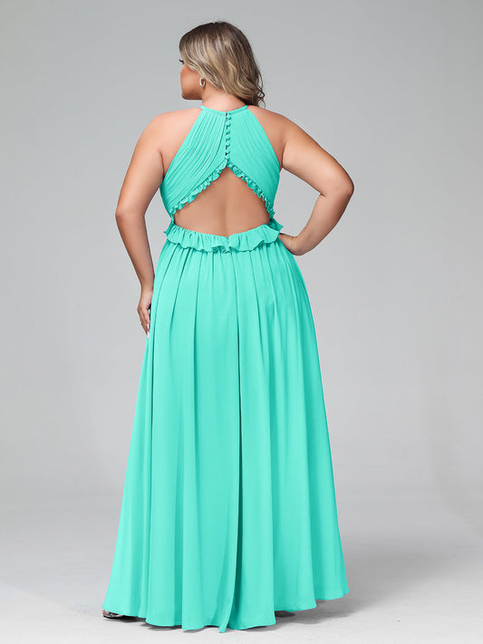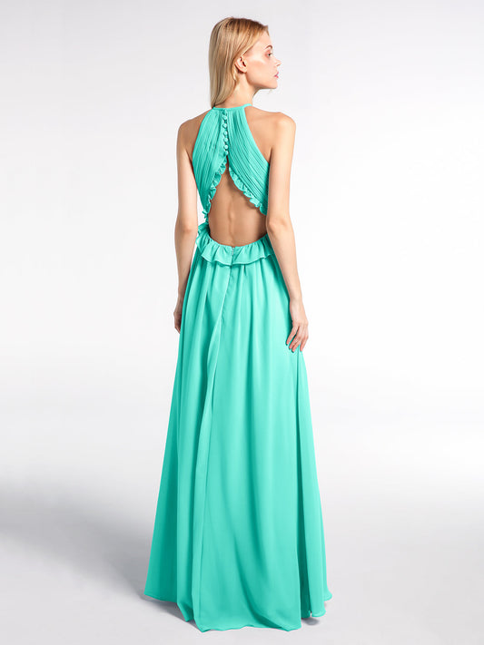 Babaroni BlancheVestido largo de chiffon con escote en forma de cerradura y espalda descubierta Turquesa Tallas Grandes