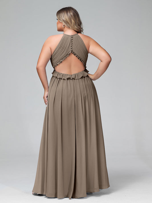 Babaroni BlancheVestido largo de chiffon con escote en forma de cerradura y espalda descubierta Topo Tallas Grandes