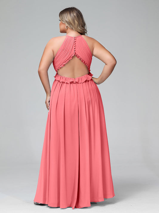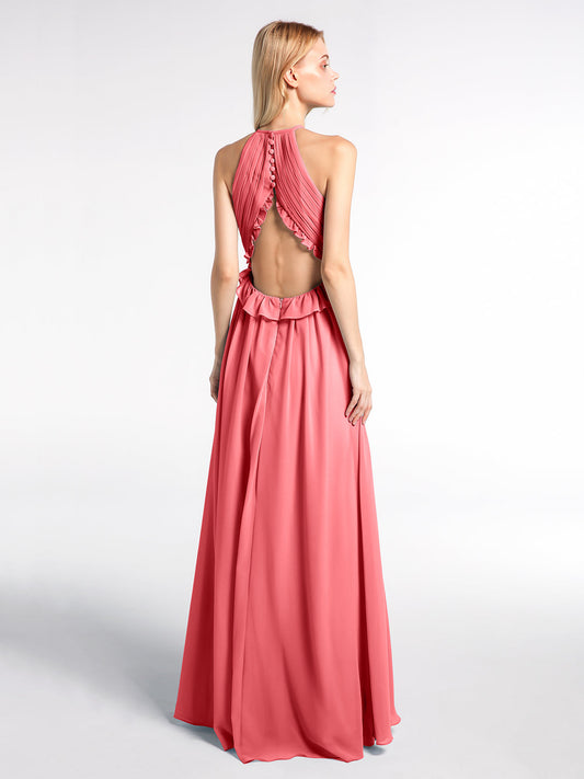 Babaroni BlancheVestido largo de chiffon con escote en forma de cerradura y espalda descubierta Sandía Tallas Grandes
