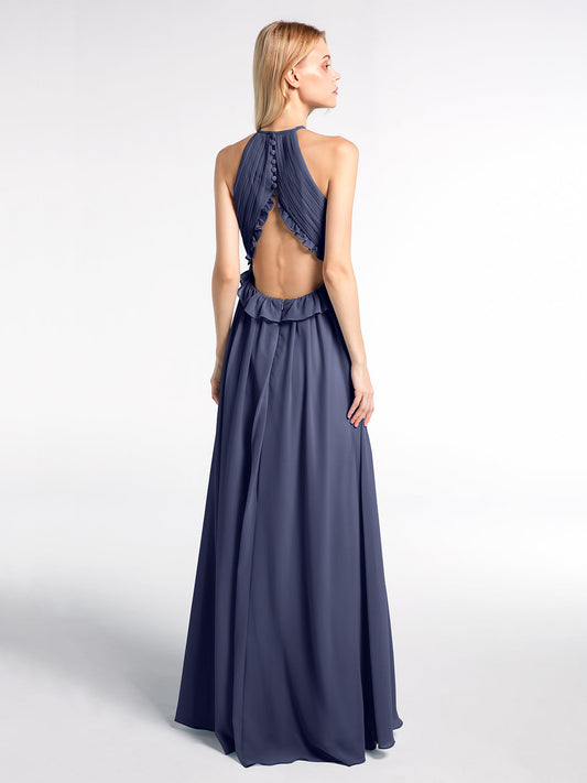 Babaroni BlancheVestido largo de chiffon con escote en forma de cerradura y espalda descubierta Tormenta