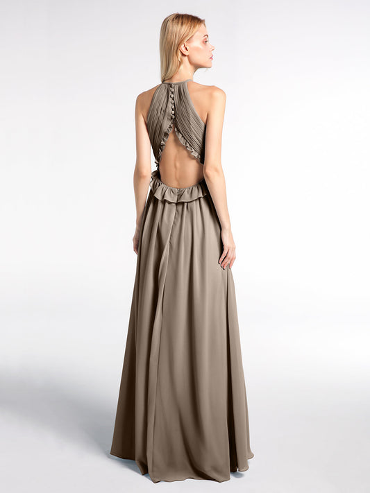 Babaroni BlancheVestido largo de chiffon con escote en forma de cerradura y espalda descubierta Topo
