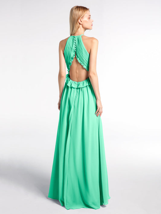 Babaroni BlancheVestido largo de chiffon con escote en forma de cerradura y espalda descubierta Verde Menta