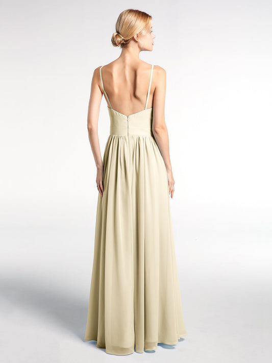 Babaroni HedyVestido largo de chiffon con escote en forma de V y cintura imperio Champán