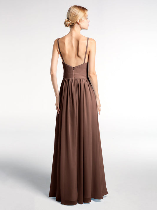 Babaroni HedyVestido largo de chiffon con escote en forma de V y cintura imperio Chocolate