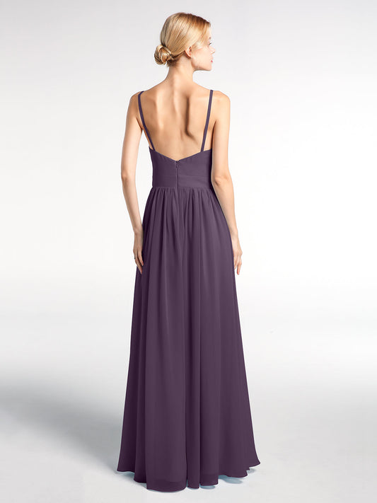 Babaroni HedyVestido largo de chiffon con escote en forma de V y cintura imperio Ciruela