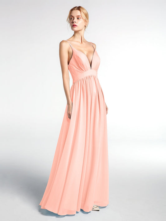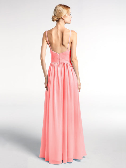 Babaroni HedyVestido largo de chiffon con escote en forma de V y cintura imperio Coral