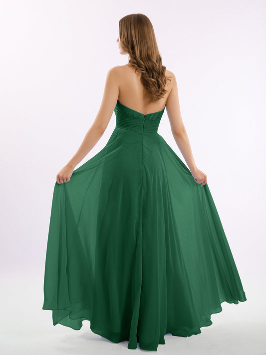 Babaroni CamilaCamila Sin Tirante Gasa Plisado Cortes De Dama De Honor Verde Oscuro Tallas Grandes