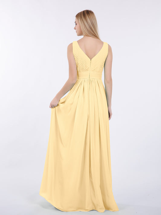 Babaroni CamilleCamille Escote En V Gasa Vestido Hasta El Topillo Con Corpino Plisado Oro Tallas Grandes