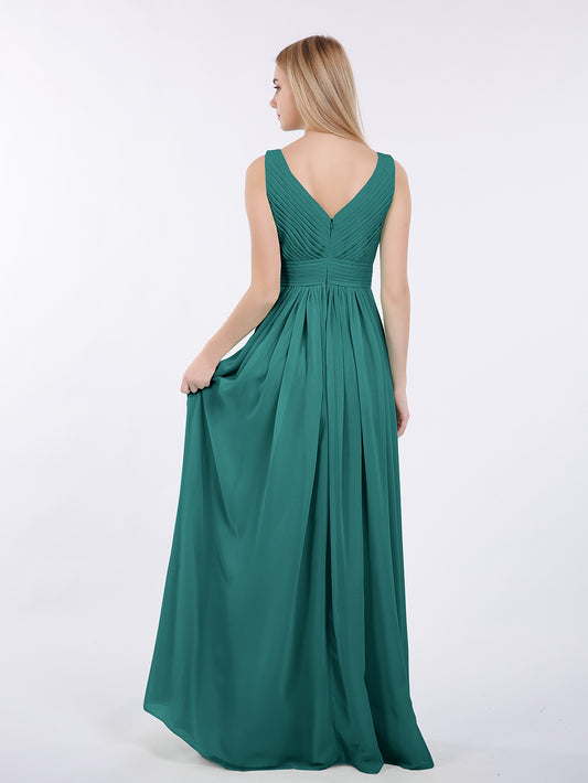 Babaroni CamilleCamille Escote En V Gasa Vestido Hasta El Topillo Con Corpino Plisado Pavo Real Tallas Grandes