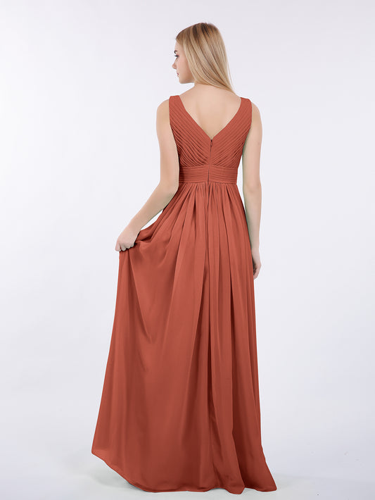 Babaroni CamilleCamille Escote En V Gasa Vestido Hasta El Topillo Con Corpino Plisado Óxido Tallas Grandes