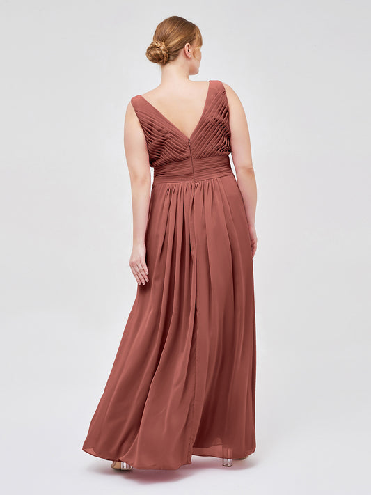 Babaroni CamilleCamille Escote En V Gasa Vestido Hasta El Topillo Con Corpino Plisado Terracota Tallas Grandes