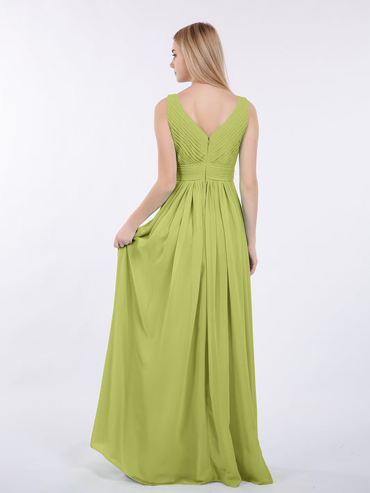 Babaroni CamilleCamille Escote En V Gasa Vestido Hasta El Topillo Con Corpino Plisado Verde Lima Tallas Grandes