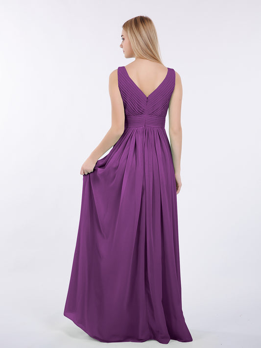 Babaroni CamilleCamille Escote En V Gasa Vestido Hasta El Topillo Con Corpino Plisado Uva