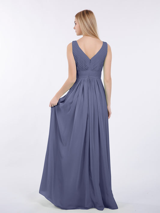 Babaroni CamilleCamille Escote En V Gasa Vestido Hasta El Topillo Con Corpino Plisado Tormenta