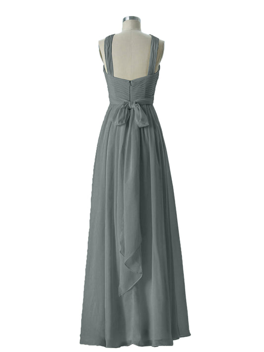 Babaroni CandanceCandance Cruzado Delante Gasa Largo Vestido Con Lazo Gris Acero