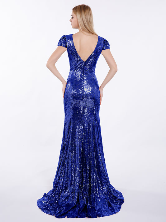 Babaroni CaraCara Lentejuelas Sirena Vestido Con Mangas De La Tapa Azul Royal Tallas Grandes