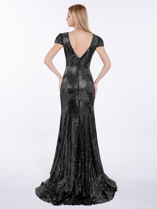 Babaroni CaraCara Lentejuelas Sirena Vestido Con Mangas De La Tapa Negro Tallas Grandes