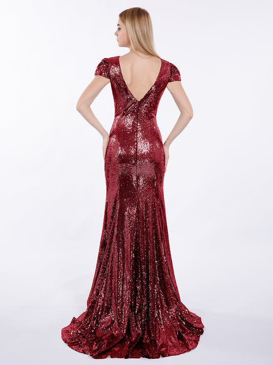 Babaroni CaraCara Lentejuelas Sirena Vestido Con Mangas De La Tapa Borgoña Tallas Grandes