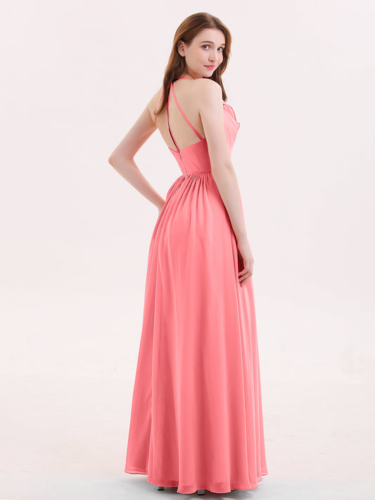 Babaroni CelinaCelina Escote En V Gasa Vestido De Dama De Honor Hasta El Topillo Sandía Tallas Grandes