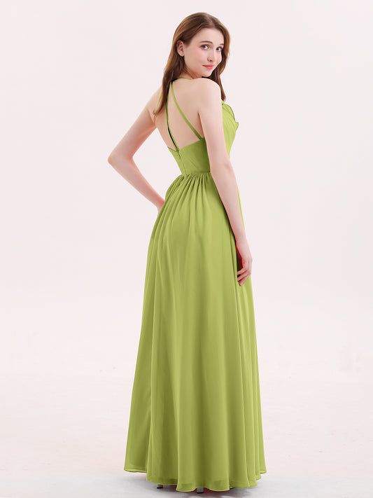 Babaroni CelinaCelina Escote En V Gasa Vestido De Dama De Honor Hasta El Topillo Verde Lima