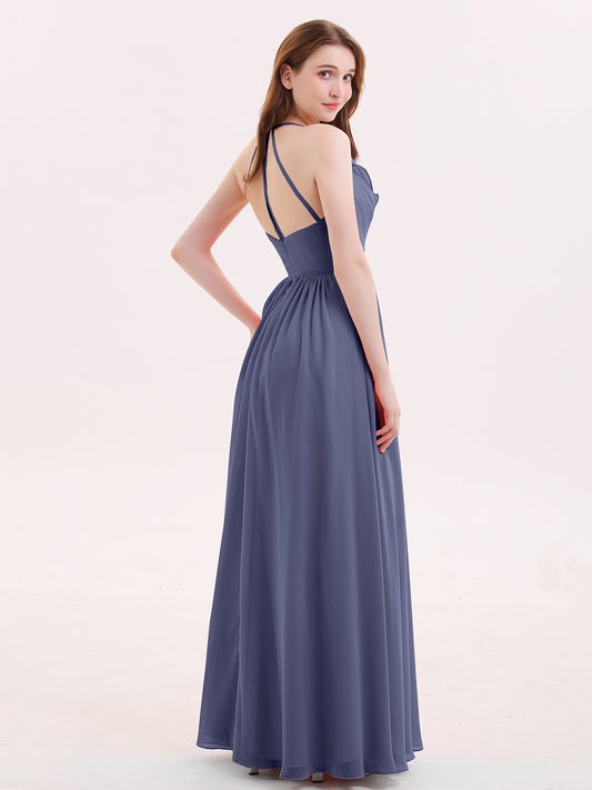 Babaroni CelinaCelina Escote En V Gasa Vestido De Dama De Honor Hasta El Topillo Tormenta