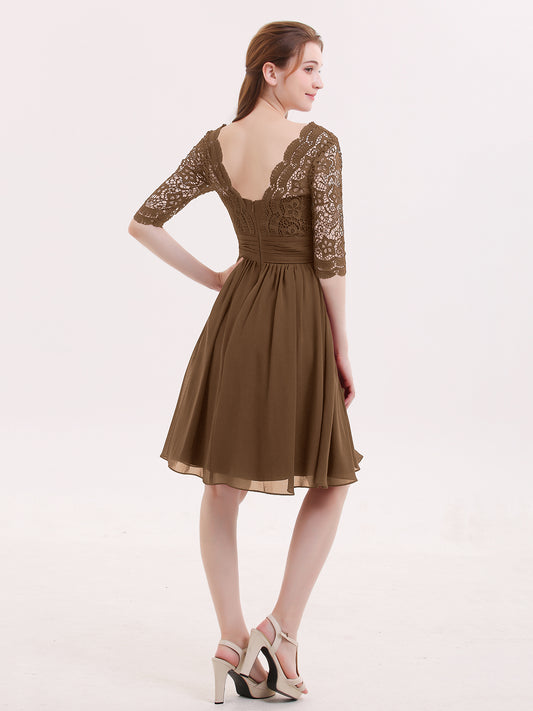 Babaroni AlexiaAlexia Encaje Y Gasa Vestido Corto Con Media Manga Marrón