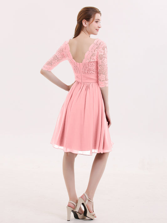 Babaroni AlexiaAlexia Encaje Y Gasa Vestido Corto Con Media Manga Melocotón Tallas Grandes