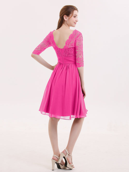 Babaroni AlexiaAlexia Encaje Y Gasa Vestido Corto Con Media Manga Fucsia