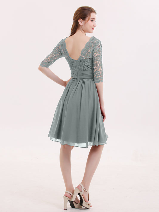 Babaroni AlexiaAlexia Encaje Y Gasa Vestido Corto Con Media Manga Gris Acero
