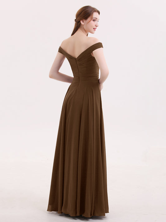 Babaroni ChristineChristine Fuera Del Hombro Hasta El Topillo Gasa Vestido Marrón Tallas Grandes