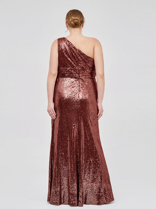 Babaroni ClaireClaire Un Hombro Largo Lentejuelas Corte Terracota Tallas Grandes