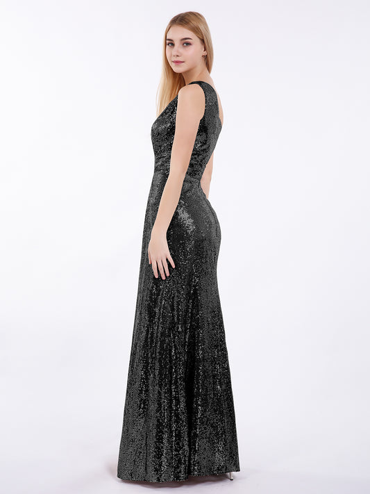 Babaroni ClaireClaire Un Hombro Largo Lentejuelas Corte Negro