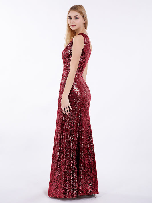 Babaroni ClaireClaire Un Hombro Largo Lentejuelas Corte Borgoña Tallas Grandes