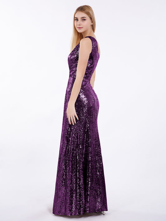 Babaroni ClaireClaire Un Hombro Largo Lentejuelas Corte Uva Tallas Grandes