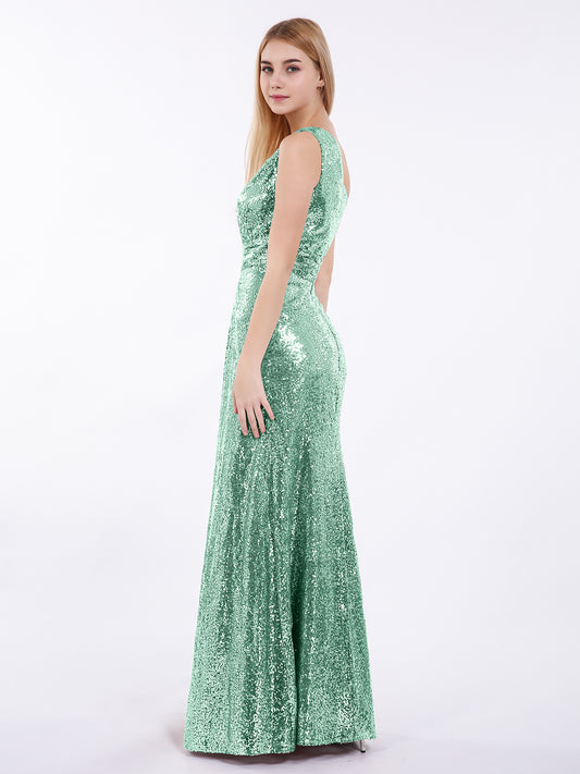 Babaroni ClaireClaire Un Hombro Largo Lentejuelas Corte Verde Menta